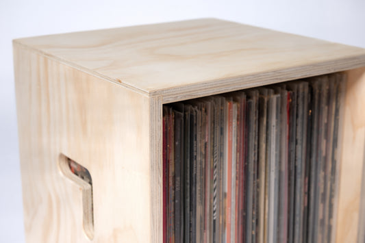 No particle board here. Our record crates are handmade from cabinet-grade plywood. They're built to last and ship fully assembled.
