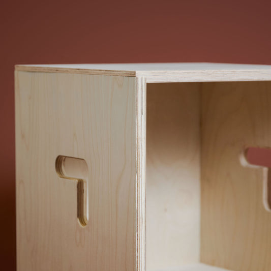 Our crates are handmade from cabinet-grade plywood. They're perfectly cubic, infinitely arrangeable, and built to last.